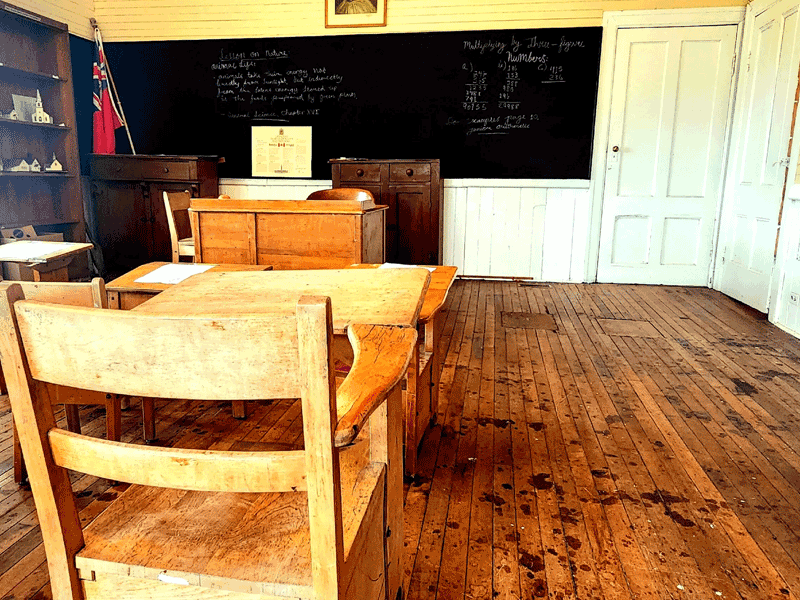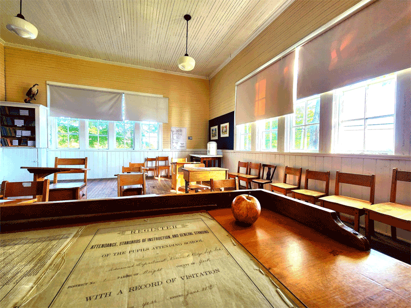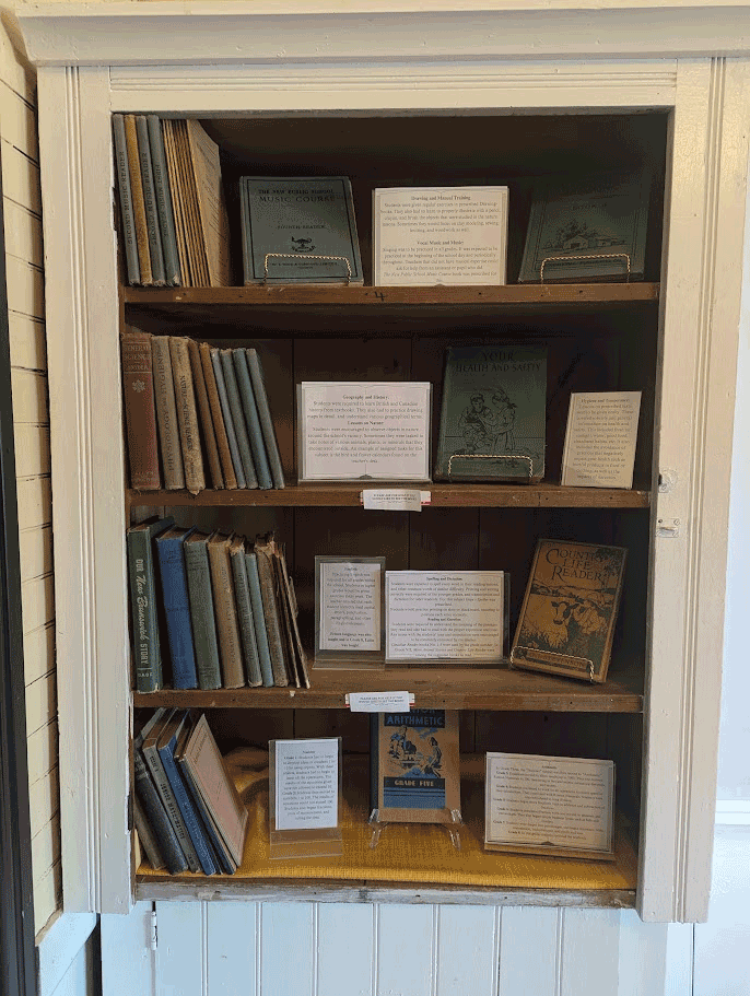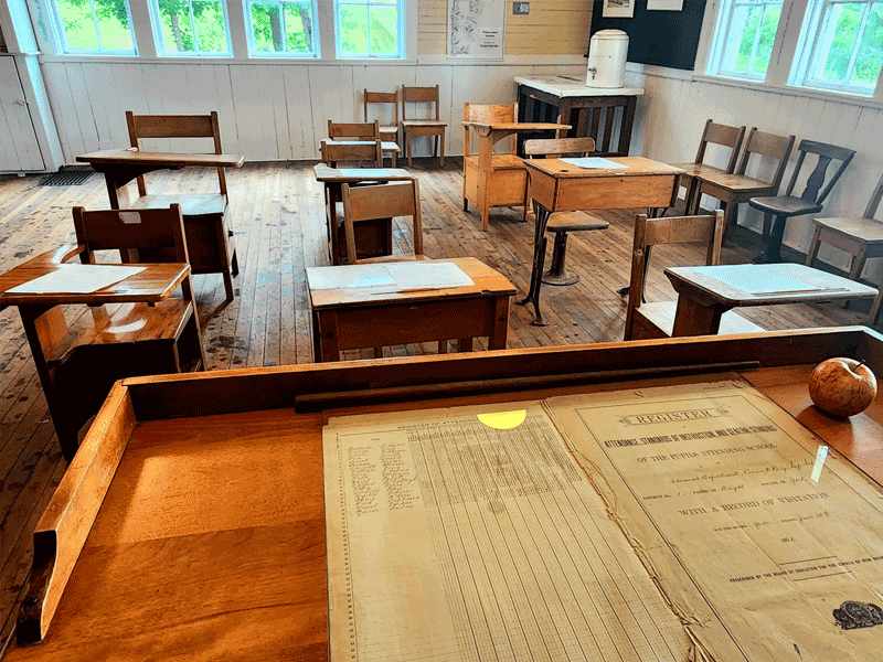 Restoring and preserving the Keswick Ridge Superior School was the impetus behind the forming of the KRHS, and it is now both a museum, and the headquarters for the Society, housing much of our research and equipment, and acting as meeting room, office, storage, and venue for our yearly “History Speaks” lecture series, and other community events. Both the entranceway and the classroom are open to the public, displaying a wide variety of local artifacts and information about the community in general, and the schoolhouse in particular. On its original site and foundation, and maintaining almost all of its original structure and woodwork, the school is literally bursting with memories. You can have a look around the classroom below.